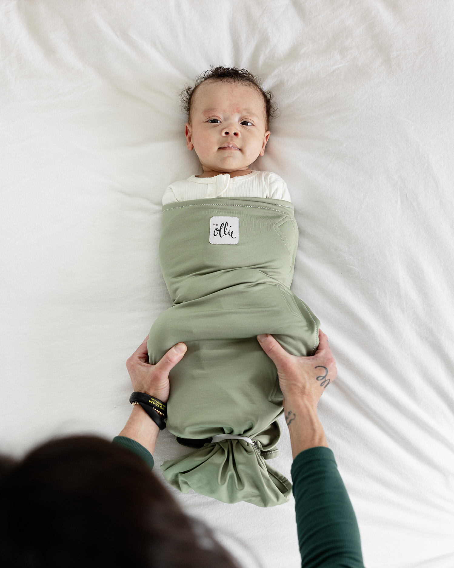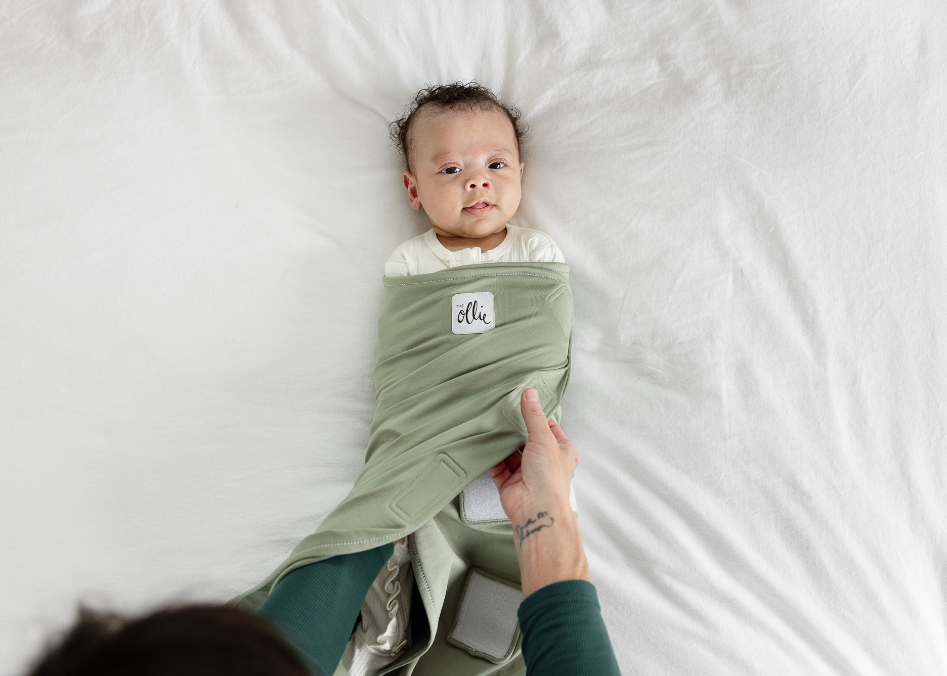 Most swaddles last a few weeks. The Ollie adjusts to your baby’s size and supports the full newborn swaddling stage due to its open-bottom design.